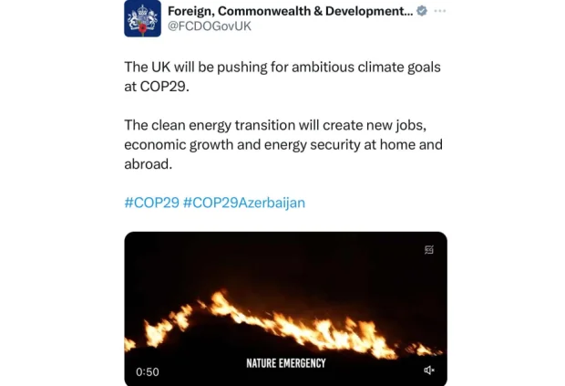 Böyük Britaniya COP29-da iddialı iqlim hədəfləri üçün səy göstərəcək. Bu barədə Birləşmiş Krallığın Xarici İşlər Nazirliyi "X" sosial şəbəkəsində COP29 ilə bağlı paylaşım edib. Paylaşımda qeyd olunub ki, təmiz enerjiyə keçid həm Britaniyada, həm də xaricdə yeni iş yerləri, iqtisadi inkişaf və enerji təhlükəsizliyi yaradacaq.
