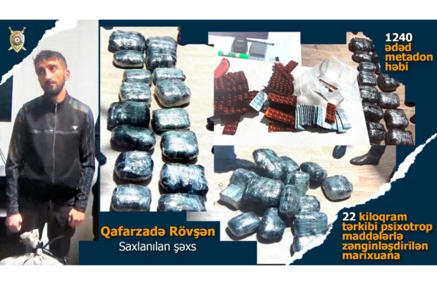 DİN-in mətbuat xidmətindən bildirilib ki, tədbir nəticəsində Rövşən Sakit oğlu Qafarzadə Ələt-Astara avtomobil yolunun Lənkəran rayonu ərazisindən keçən hissəsində saxlanılıb. Onun üzərindən 22 kiloqram tərkibi psixotrop maddələrlə zənginləşdirilən marixuana və 1240 ədəd metadon həbi aşkarlanıb. R.Qafarzadə narkotikləri sosial şəbəkələrdə tanış olduğu İran vətəndaşı "Vəlixan" adlı şəxsin göstərişi ilə Lənkəran rayonu ərazisindən əldə etdiyini bildirib. O, həmin narkotik maddələri götürüb deyiləcək yerə qoyaraq bu narkokuryerliyinin müqabilində 3000 manat əldə edəcəkmiş.