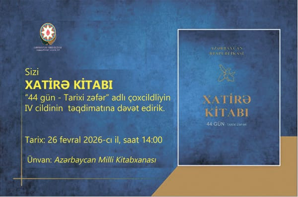 Mədəniyyət Nazirliyi Respublika Xatirə Kitabı Redaksiyası növbəti təqdimatı Azərbaycan Milli Kitabxanasında keçirdi. Bakı şəhərinin Nəsimi, Nizami, Xətai, Suraxanı, Sabunçu, Binəqədi, Xəzər, Pirallahı, Qaradağ, Səbail və Nərimanov rayonları üzrə “44 gün – Tarixi zəfər” adlı çoxcildliyin IV cildinin təqdimatını keçirdi. Bu cilddə Vətən uğrunda şəhid olmuş şəxslər haqqında əlifba sırası ilə ensiklopedik məlumatlar yer alıb, onların adları və xatirələri əbədiləşdirilib.