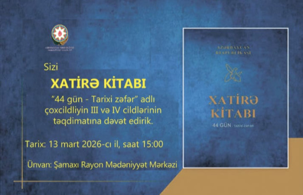 "Respublika Xatirə Kitabı Redaksiyası Vətən uğrunda qəhrəmanlıqla həlak olan, xalqımıza tarixi zəfər bəxş edən cəsur oğulların adlarının və xatirələrinin əbədiləşdirilməsi məqsədilə "44 gün – Tarixi zəfər" adlı 4 cilddə kitab nəşr etdirib, onların təqdimatlarını keçirib. Bu kitablar Azərbaycanın hər yerində şəhid ailələrinə çatdırılıb. Respublika Xatirə Kitabı yaddaşımızın tarix salnaməsidir və redaksiya hazırda dövlət başçısı İlham Əliyevin diqqət və qayğısı altında bugünkü və gələcək strateji işlərini də eyni məhəbbət və həvəslə davam etdirmək üçün əzmlə çalışır. Xalqımıza böyük Zəfər bəxş edən oğullarımızın adlarının əbədiləşdirilməsi Respublika Xatirə Kitabı Redaksiyasının ümdə işidir və redaksiya bu prosesi daim öz üzərində bir məsuliyyət kimi hiss etmiş, bu istiqamətdə araşdırma işləri aparmış və bu ənənəni hazırda da davam etdirməkdədir". Baki-xeber.com-un məlumatına görə, bunu Mədəniyyət Nazirliyi Respublika Xatirə Kitabı Redaksiyasının baş redaktoru Nəzakət Məmmədova martın 13-də Şamaxı rayon Mədəniyyət Mərkəzində "44 gün – Tarixi zəfər" adlı çoxcildliyin III və IV cildlərinin təqdimat mərasimində deyib. İradə SARIYEVA Şamaxı