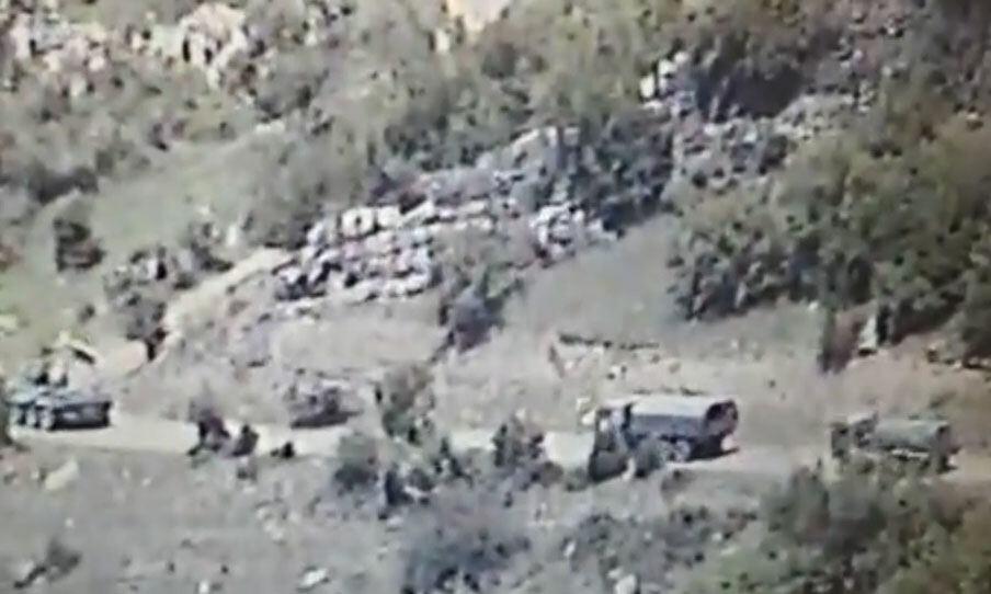 Videoda sülhməramlıların zirehli texnikasının müşayiəti ilə Xankəndi-Kərkicahan-Xəlfəli yolu vasitəsilə növbəti dəfə qeyri-qanuni erməni silahlı birləşmələrinin döyüş mövqelərinə hərbi daşımaların həyata keçirilməsi aydın görünür.