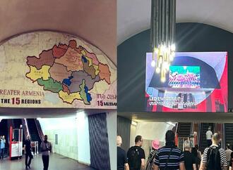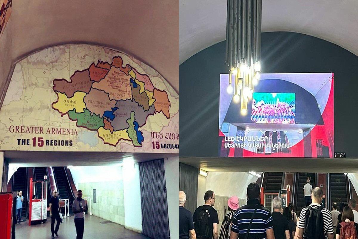 İrəvan metrosunun “Respublika Meydanı” stansiyasında yerləşdirilmiş qondarma “Böyük Ermənistan” xəritəsinin yığışdırıldığı görüntüləri yayılıb.