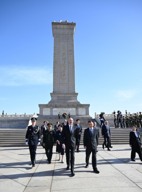 Azərbaycan Respublikasının Prezidenti İlham Əliyev aprelin 23-də Pekində Xalq Qəhrəmanları Abidəsini ziyarət edib.