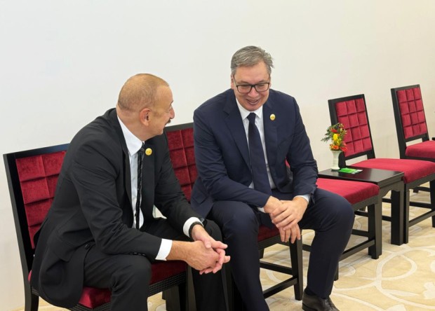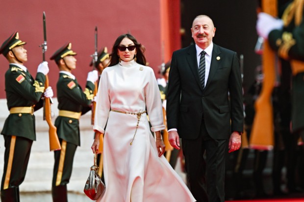 Azərbaycan Respublikasının Prezidenti İlham Əliyev və Birinci xanım Mehriban Əliyeva paradı izləmək üçün Tiananmen Meydanına gəliblər.