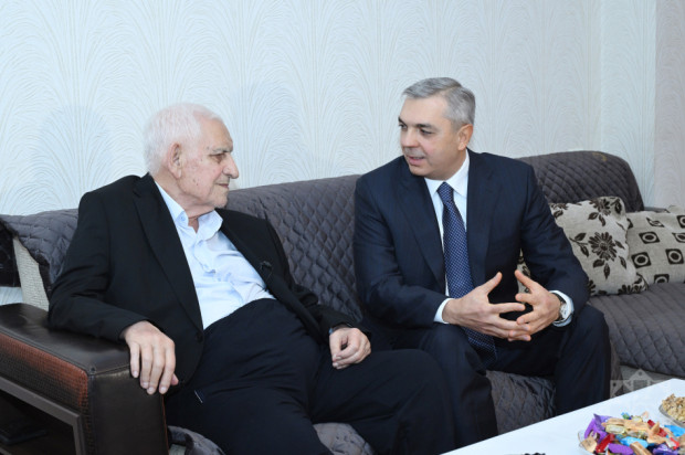 Samir Nuriyev 95 illik yubileyi münasibətilə Azərbaycan Respublikasının Prezidenti İlham Əliyevin və birinci xanım Mehriban Əliyevanın salamlarını və səmimi təbriklərini Nəriman Həsənzadəyə çatdırıb.