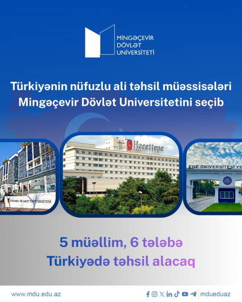 Mingəçevir Dövlət Universitetinin (MDU) beynəlxalq əməkdaşlıq sahəsində əldə etdiyi növbəti uğur çərçivəsində 6 tələbə bir semestrlik, 5 müəllim isə iki həftəlik mübadilə proqramında iştirak etmək imkanı qazanıb. Mübadilələr “Orhun Mübadilə Proqramı” çərçivəsində Türkiyənin nüfuzlu ali təhsil müəssisələri olan Hacettepe Universiteti, Ege Universiteti, İstanbul Ticarət Universiteti, Karamanoğlu Mehmetbəy Universiteti və Eskişehir Anadolu Universiteti ilə əməkdaşlıq çərçivəsində həyata keçirilir.