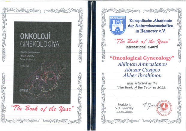 Müasir tibbin son nailiyyətlərini özündə əks etdirən “Onkoloji ginekologiya” adlı monoqrafiya Almaniyanın Hannover şəhərində “İlin Kitabı” Beynəlxalq mükafat müsabiqəsinin qalibi olmuşdur. Kitabın müəllifləri akademik Əhliman Əmiraslanov, professor Abuzər Qazıyev və uzman həkim Əkbər İbrahimovdur.