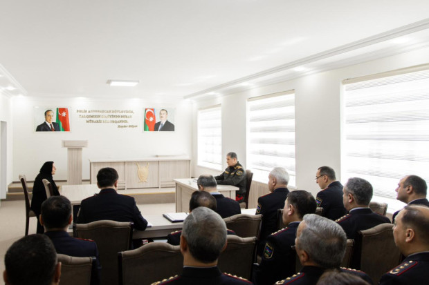 Səfər çərçivəsində general-polkovnik Vilayət Eyvazov polis və daxili qoşunlarda xidmət etmək arzusunda olan gənclərin sıra baxışını keçirib.
